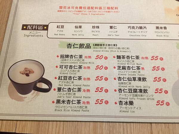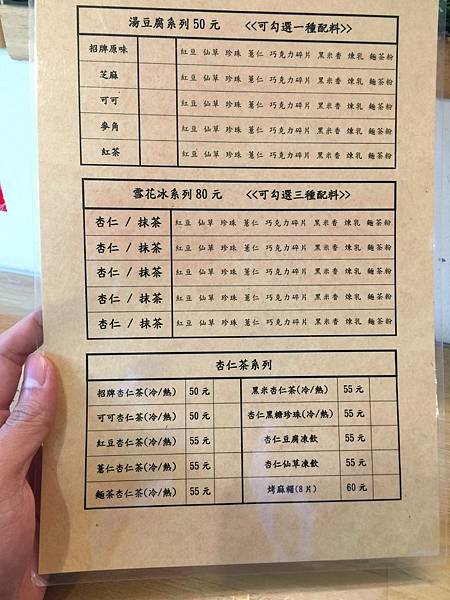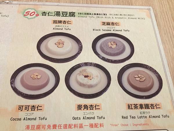 點了個杏仁湯豆腐試試看,配料好難選擇,