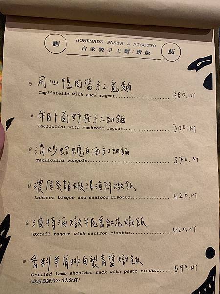 清炒蛤蜊白酒手工細麵 370元